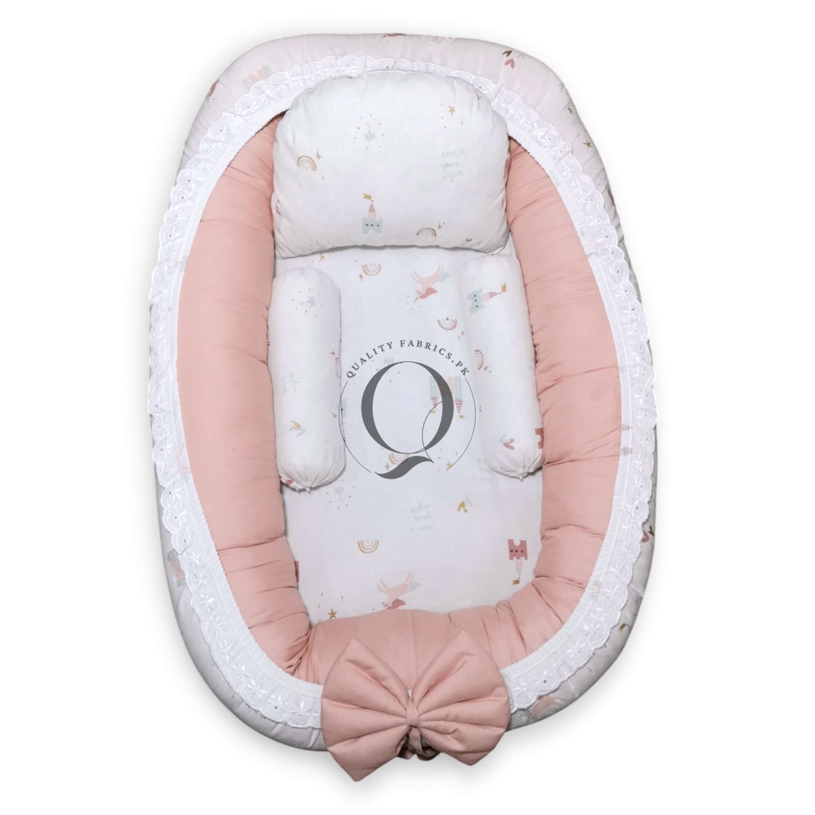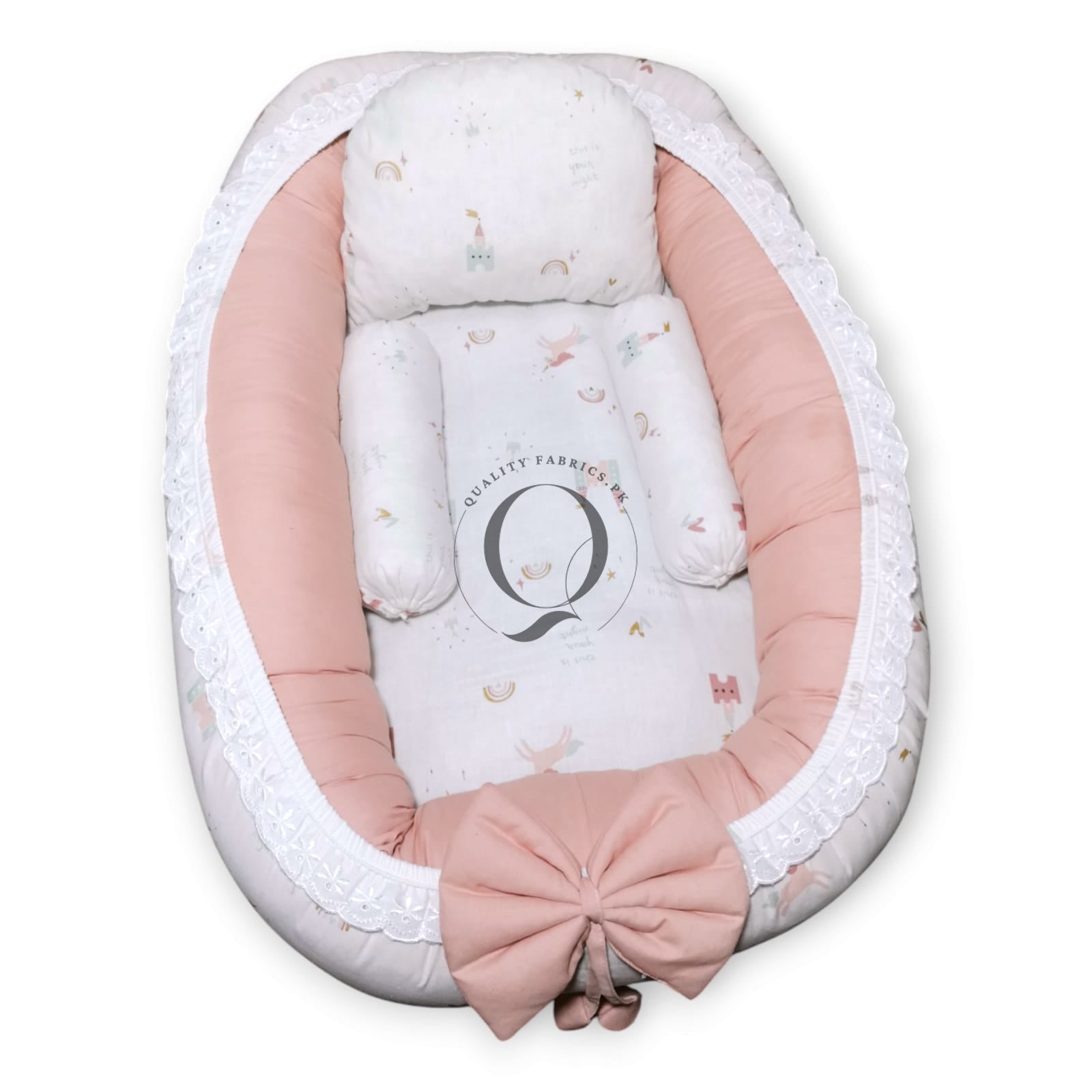 Transform your newborn's sleep routine with the luxurious comfort and stylish design of our Snuggle Bed. Trust Qualityfabrics.pk to provide the best in comfort and care for your little one.