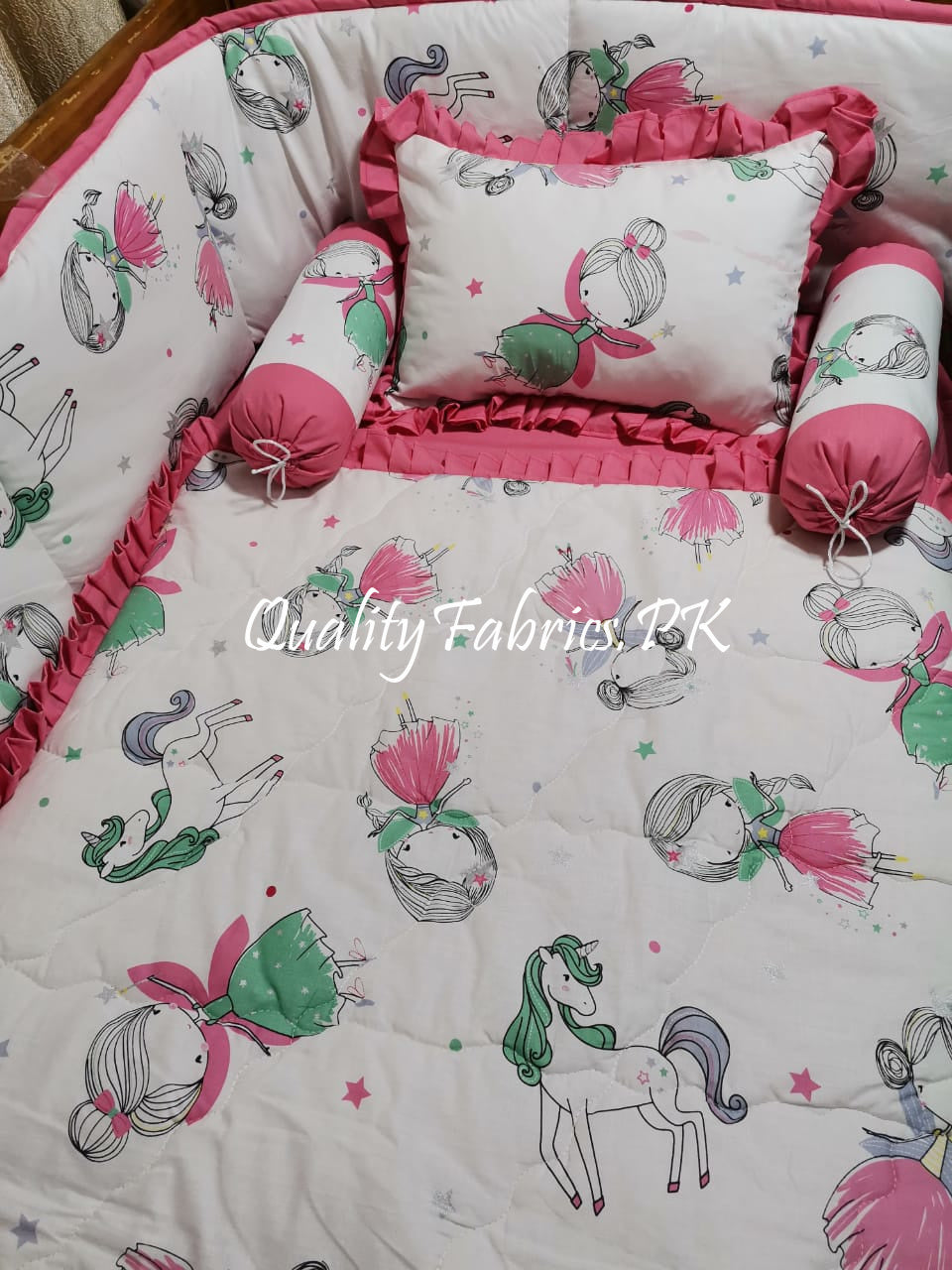 At Qualityfabrics.pk, we offer a wide range of high-quality cot bedding sets at the best prices in Pakistan. Create a haven of comfort and style for your baby today!