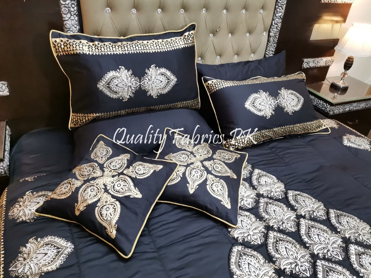 CS-501: Bridal 8 Piece Comforter Set (Block Printing & Premium Quality Cotton Satin)