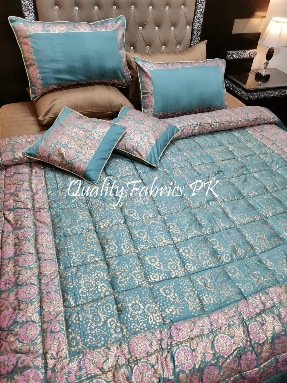 CS-502: Bridal 8 Piece Comforter Set (Block Printing & Premium Quality Cotton Satin)