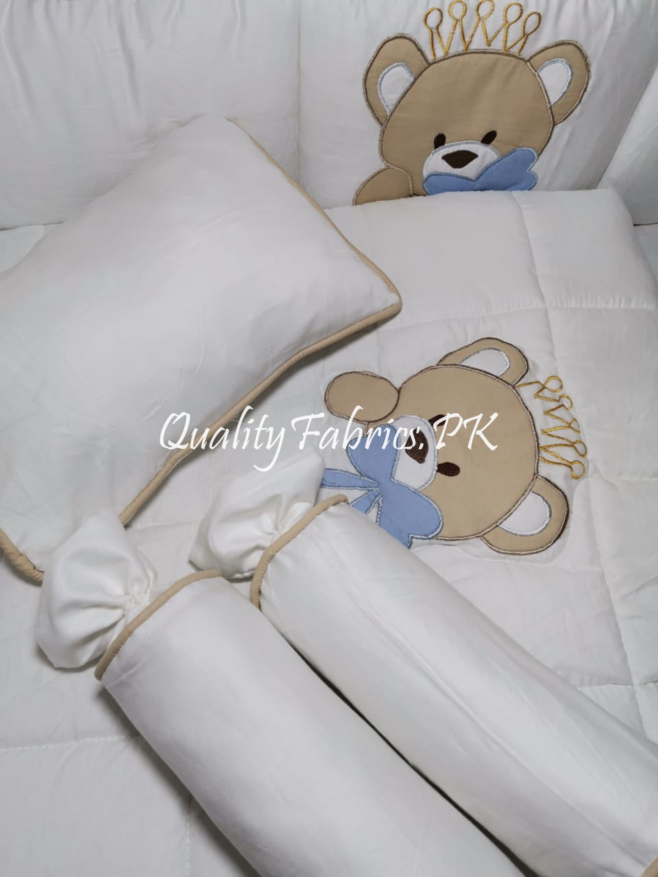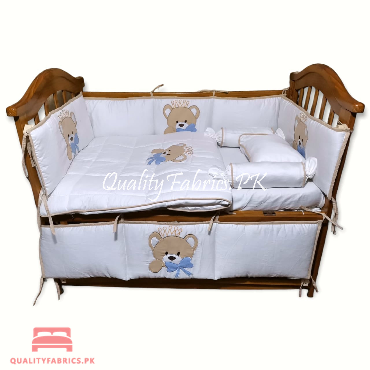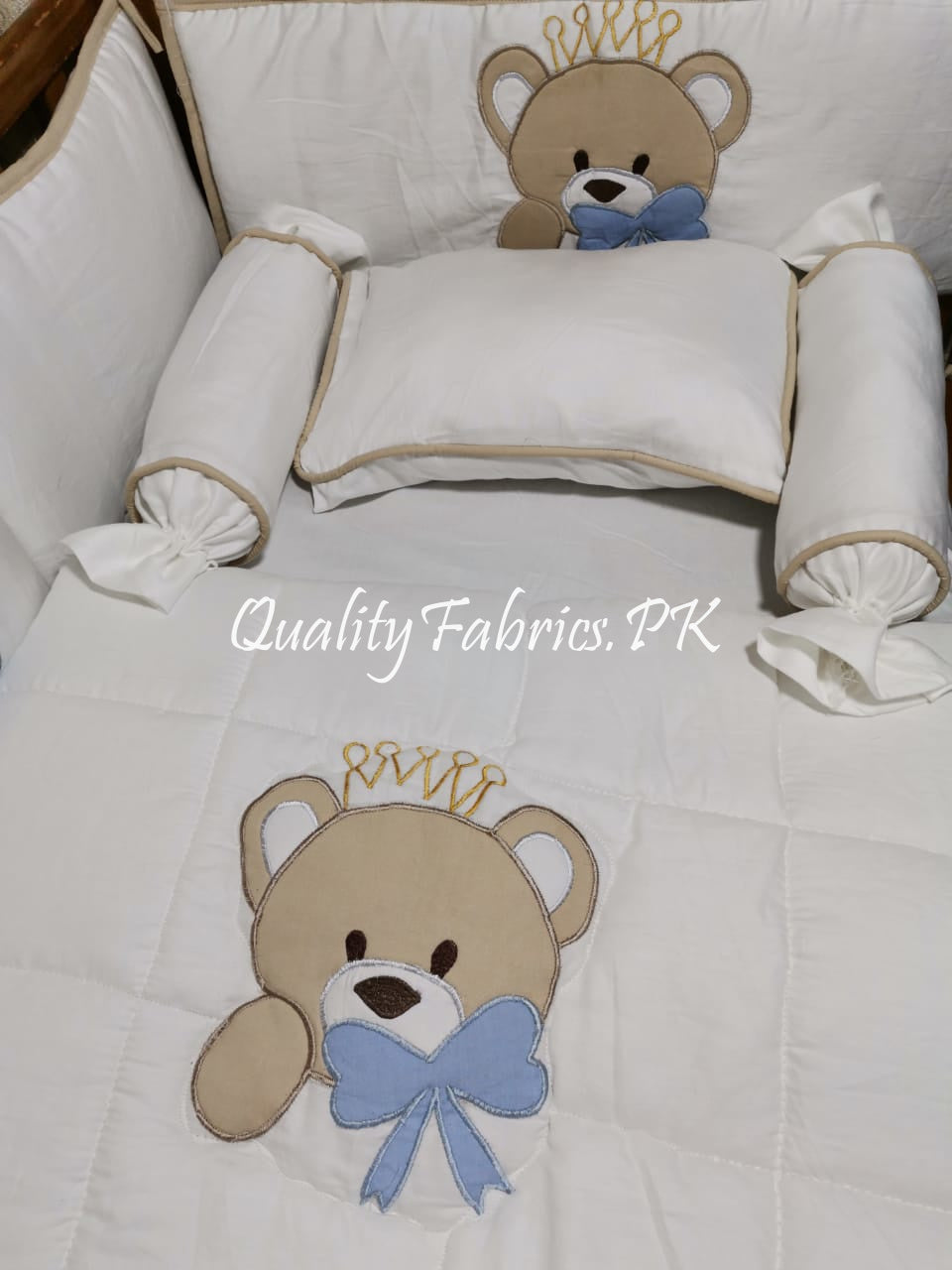 9-Piece Cot Bedding Set - Bear Theme Embroidered for Newborns to Toddlers | Qualityfabrics.pk