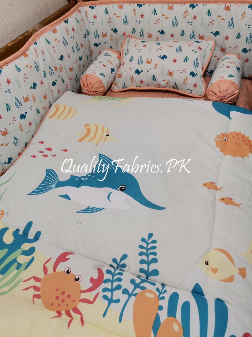 At Qualityfabrics.pk, we offer a wide range of high-quality cot bedding sets at the best prices in Pakistan. Create a haven of comfort and style for your baby today!