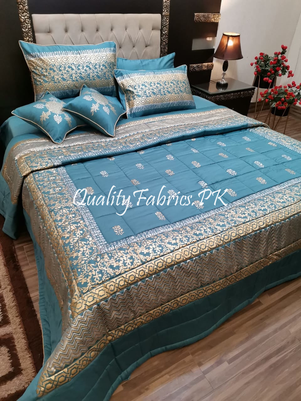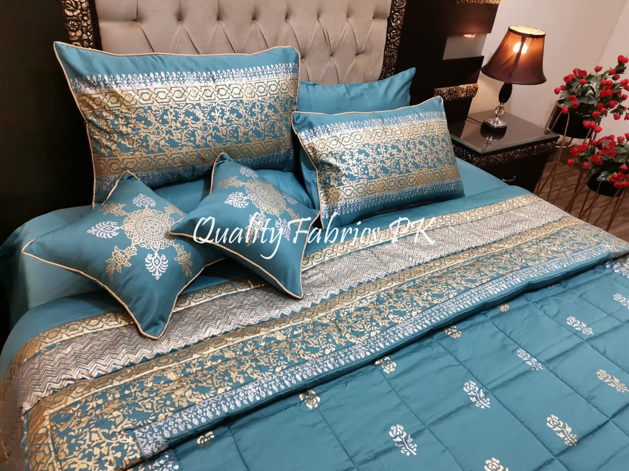 CS-595: Bridal 8 Piece Comforter Set (Block Printing & Premium Quality Cotton Satin)