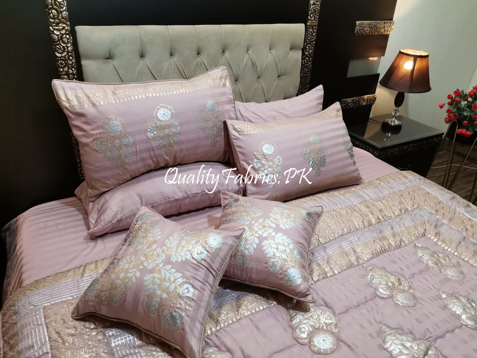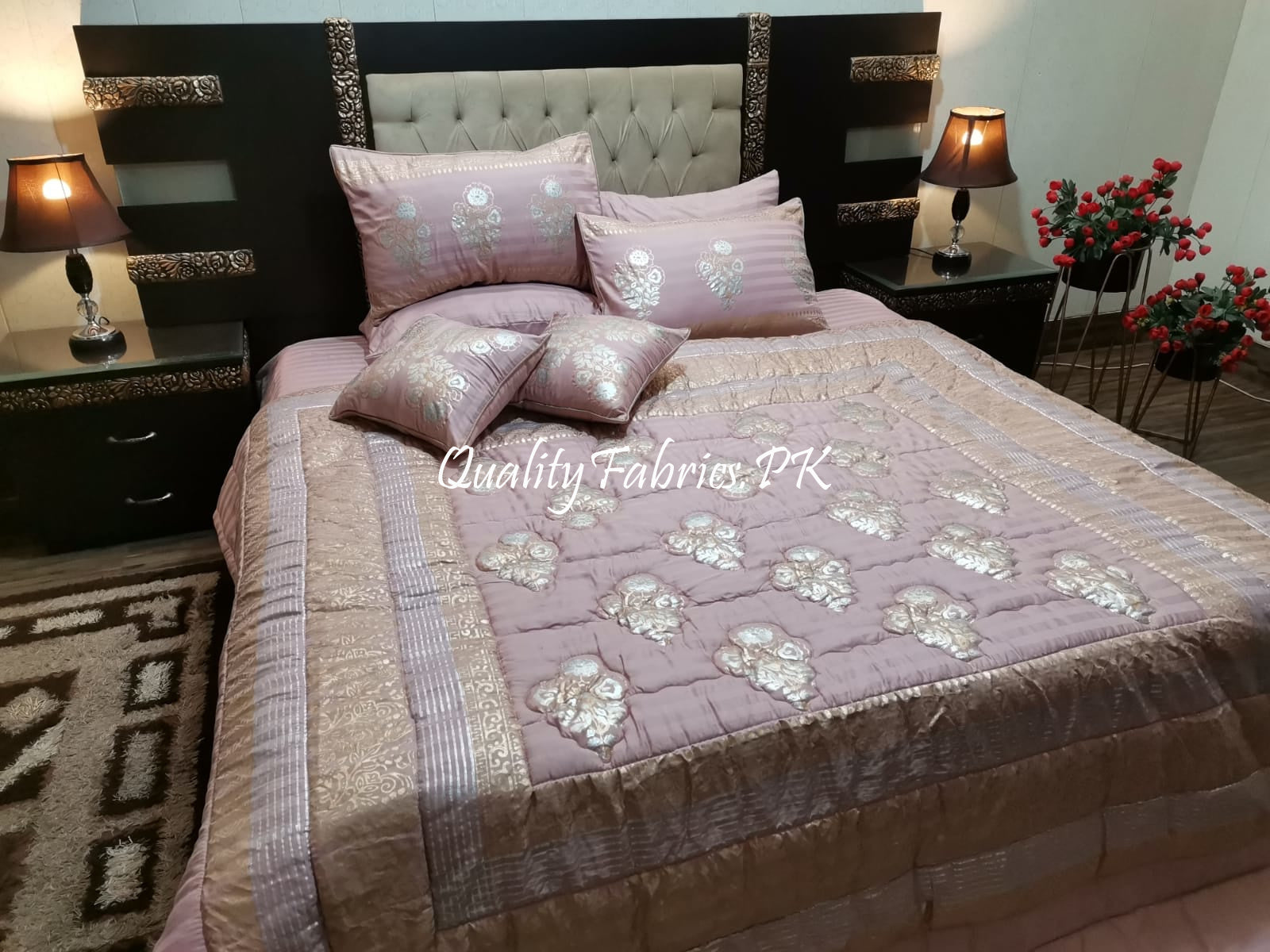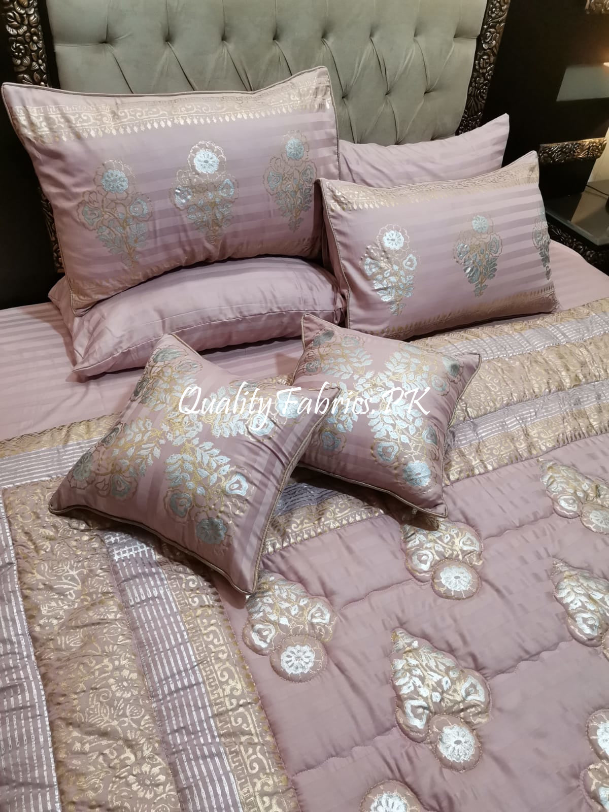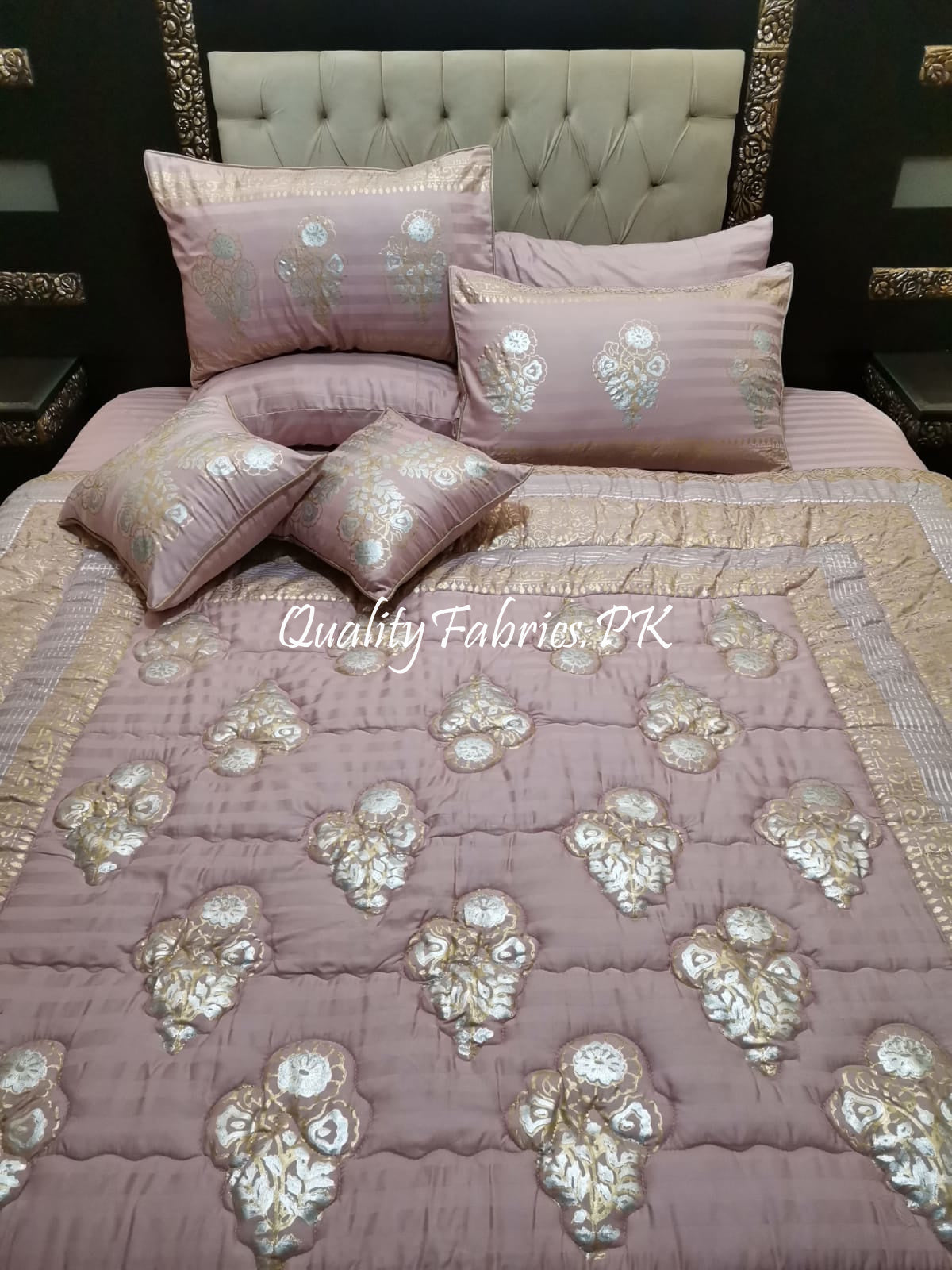 CS-601: Bridal 8 Piece Comforter Set (Block Printing & Premium Quality Cotton Satin)