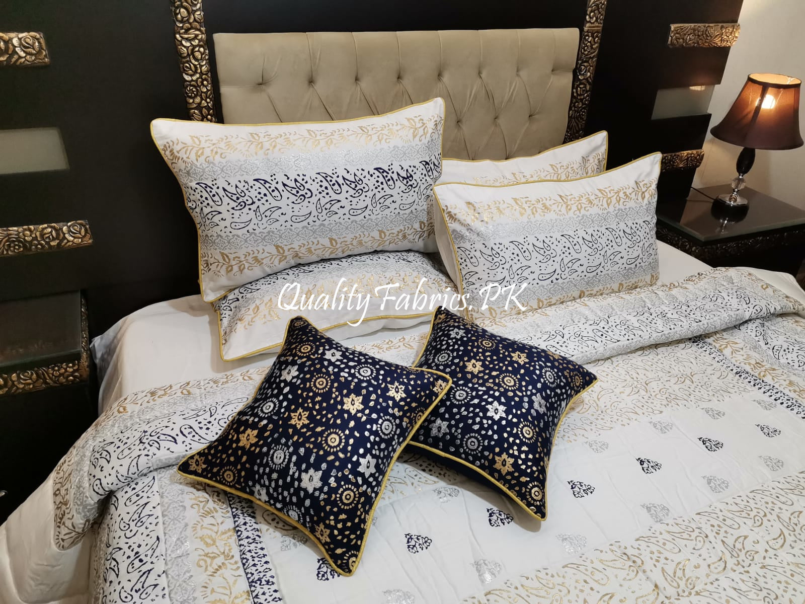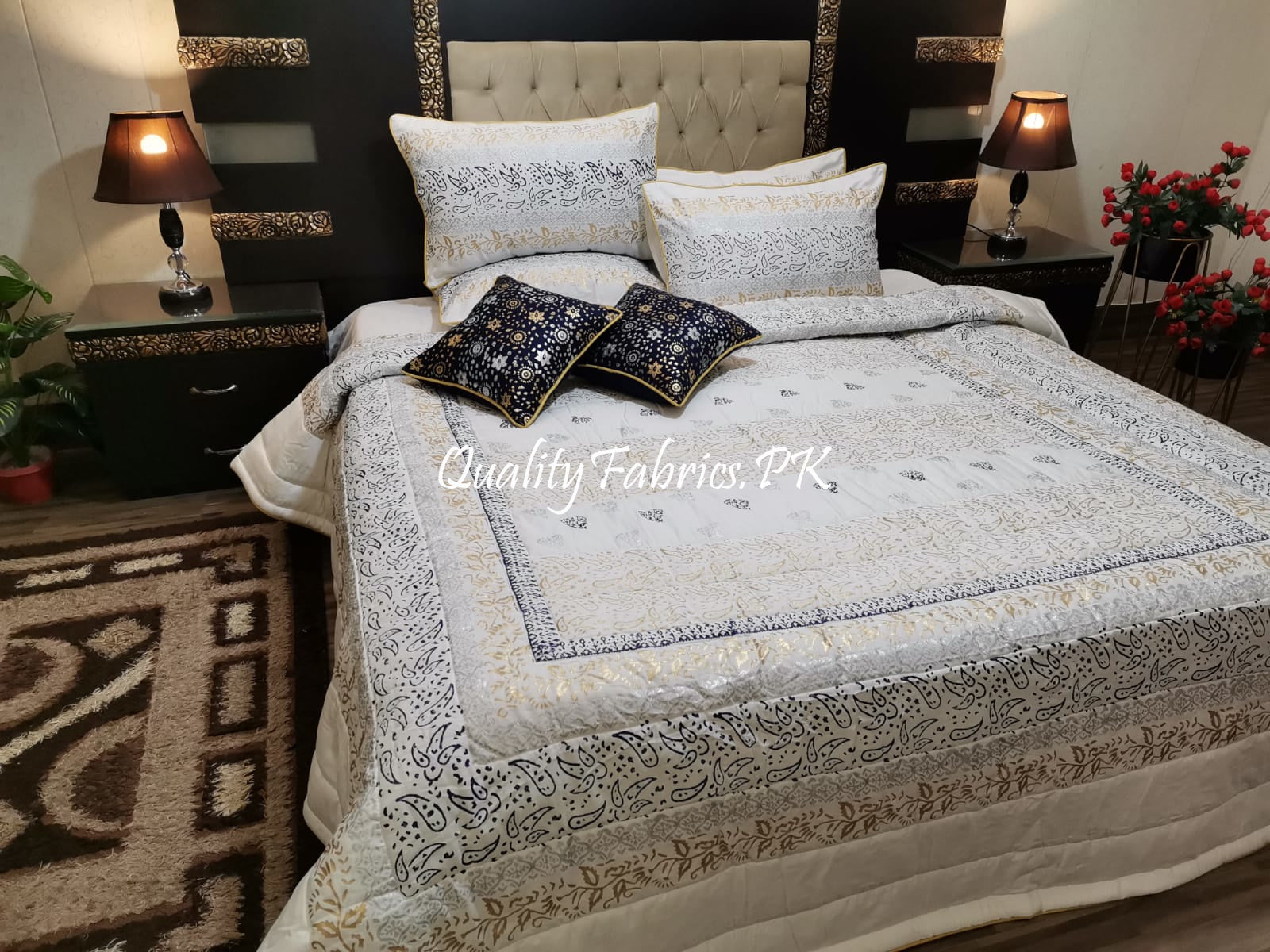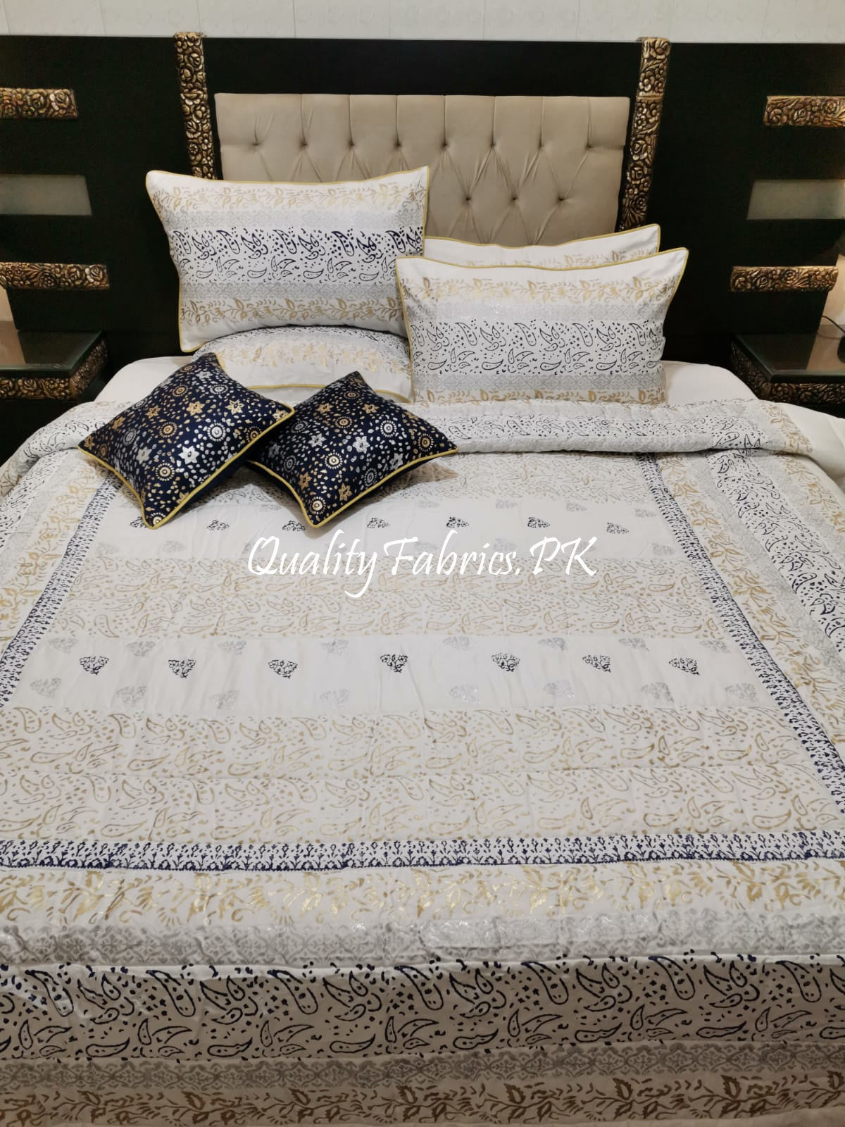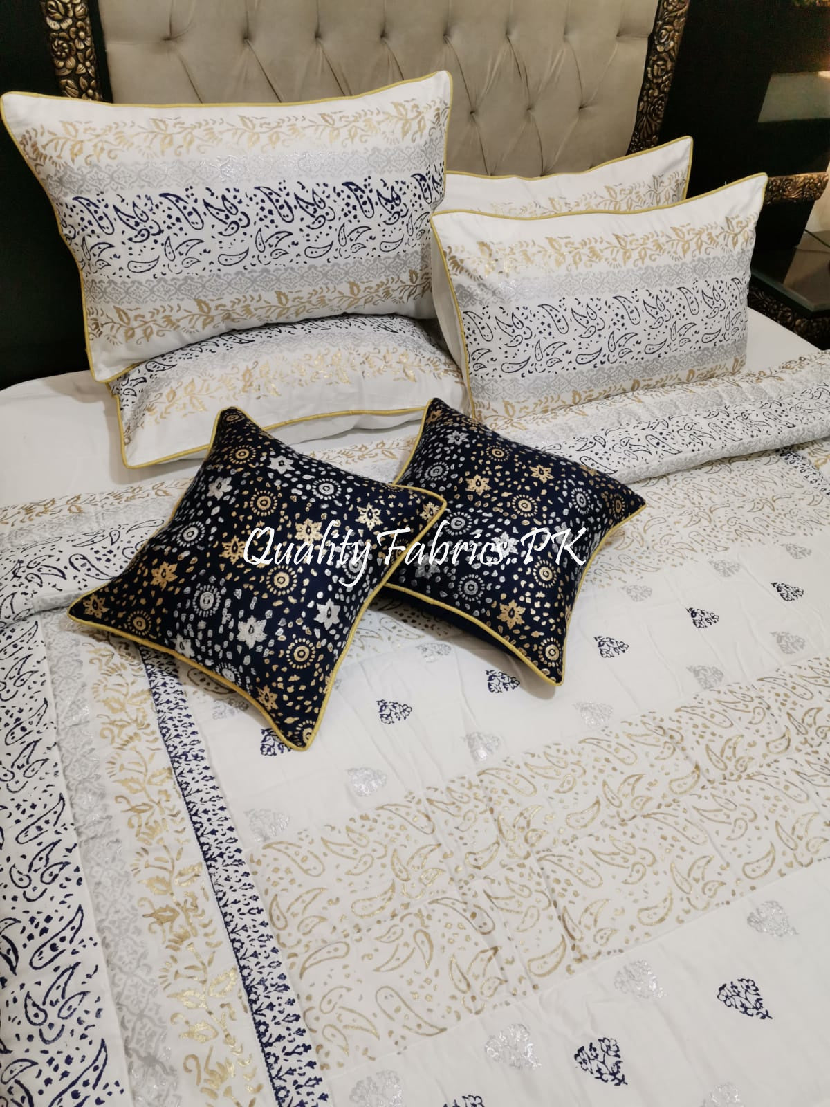 CS-605: Bridal 8 Piece Comforter Set (Block Printing & Premium Quality Cotton Satin)