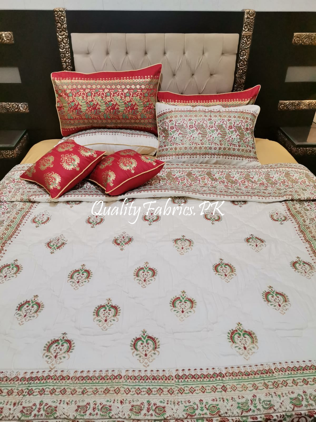 CS-621: Bridal 8 Piece Comforter Set (Block Printing & Premium Quality Cotton Satin)