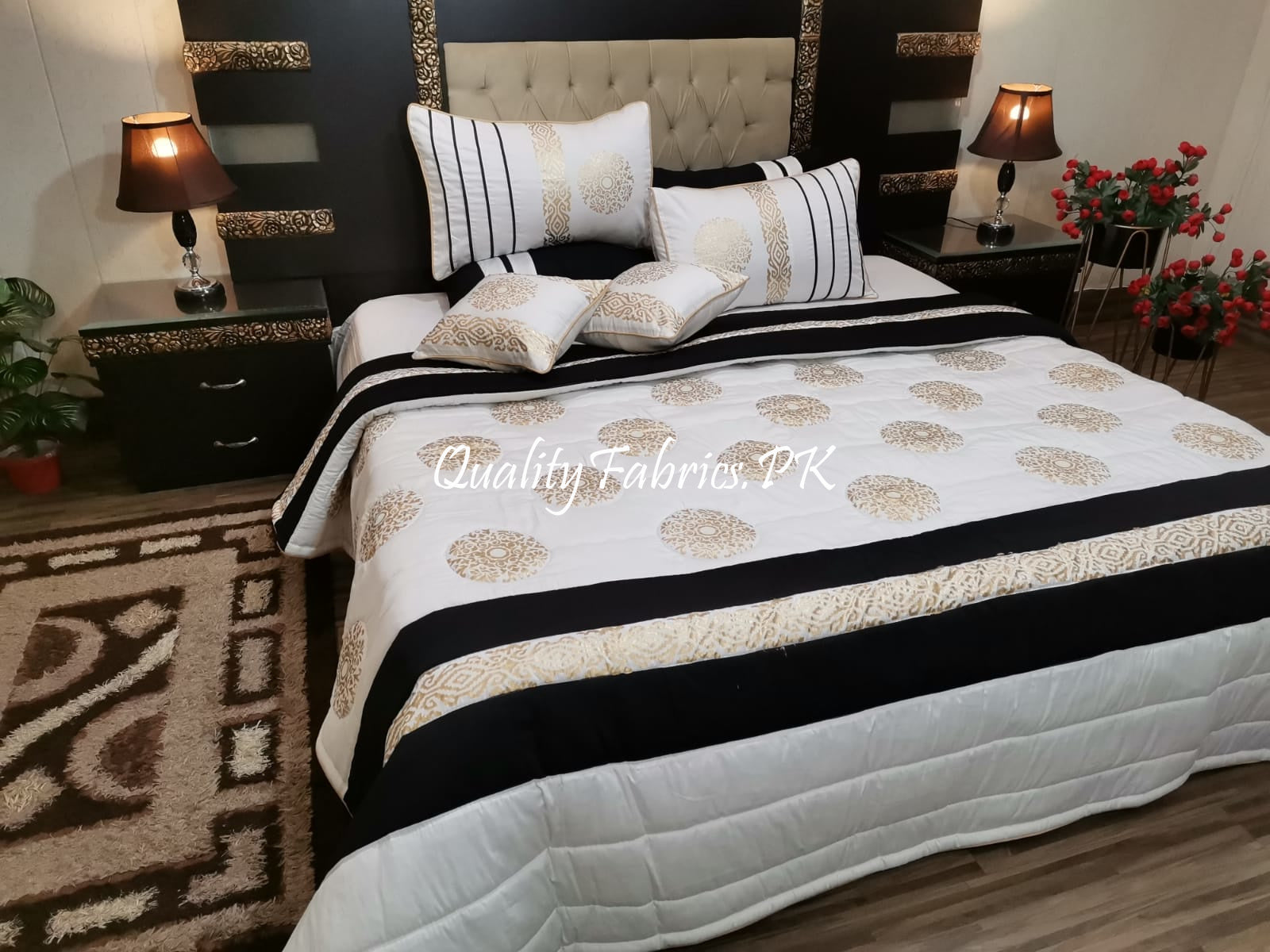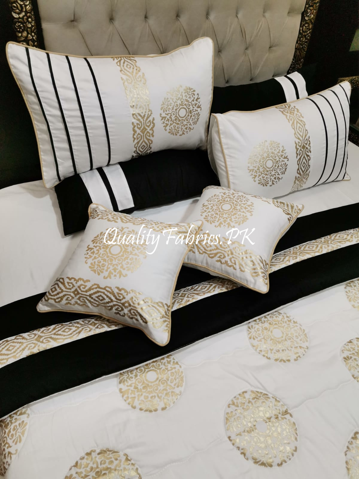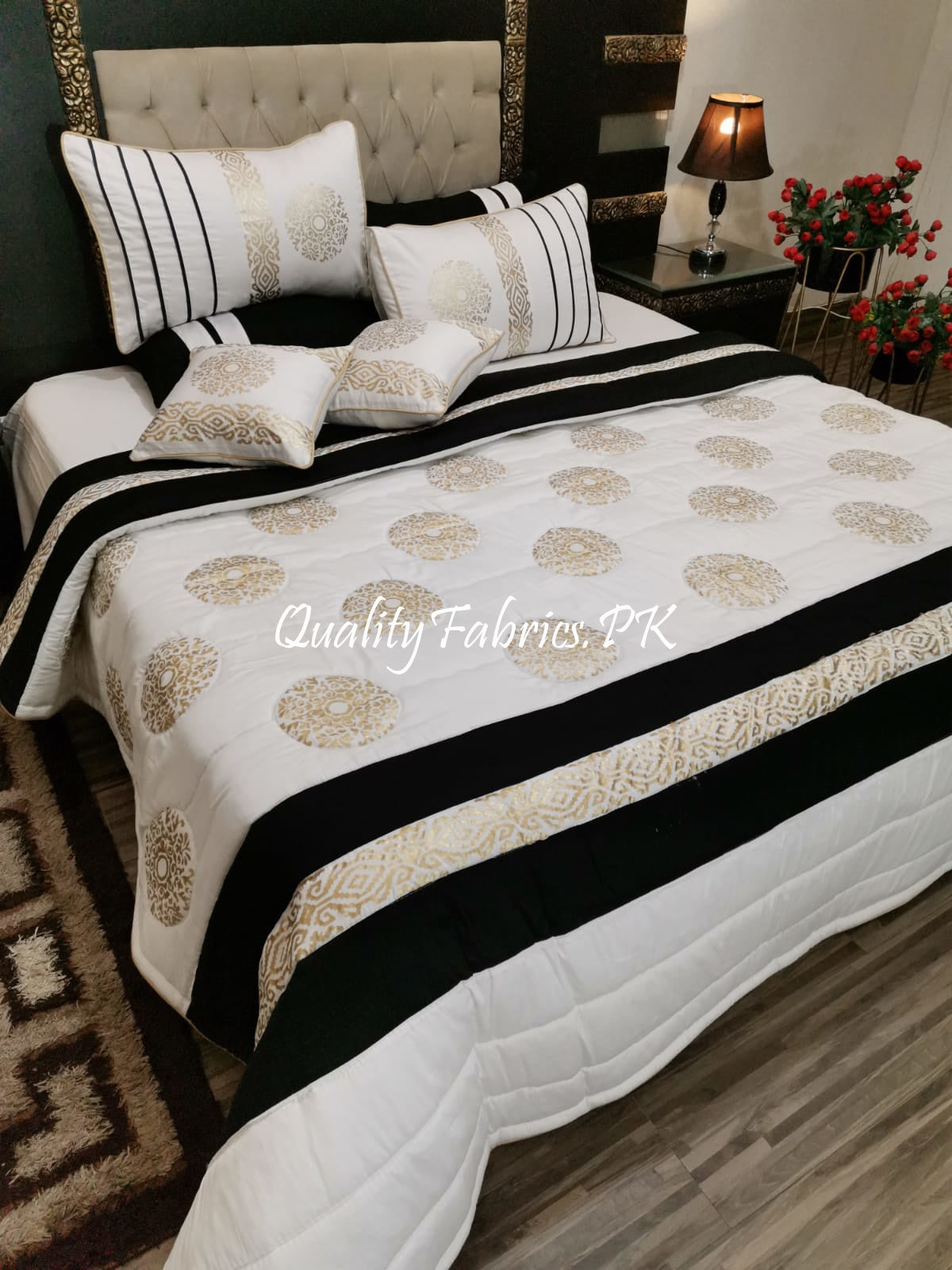 CS-622: Bridal 8 Piece Comforter Set (Block Printing & Premium Quality Cotton Satin)