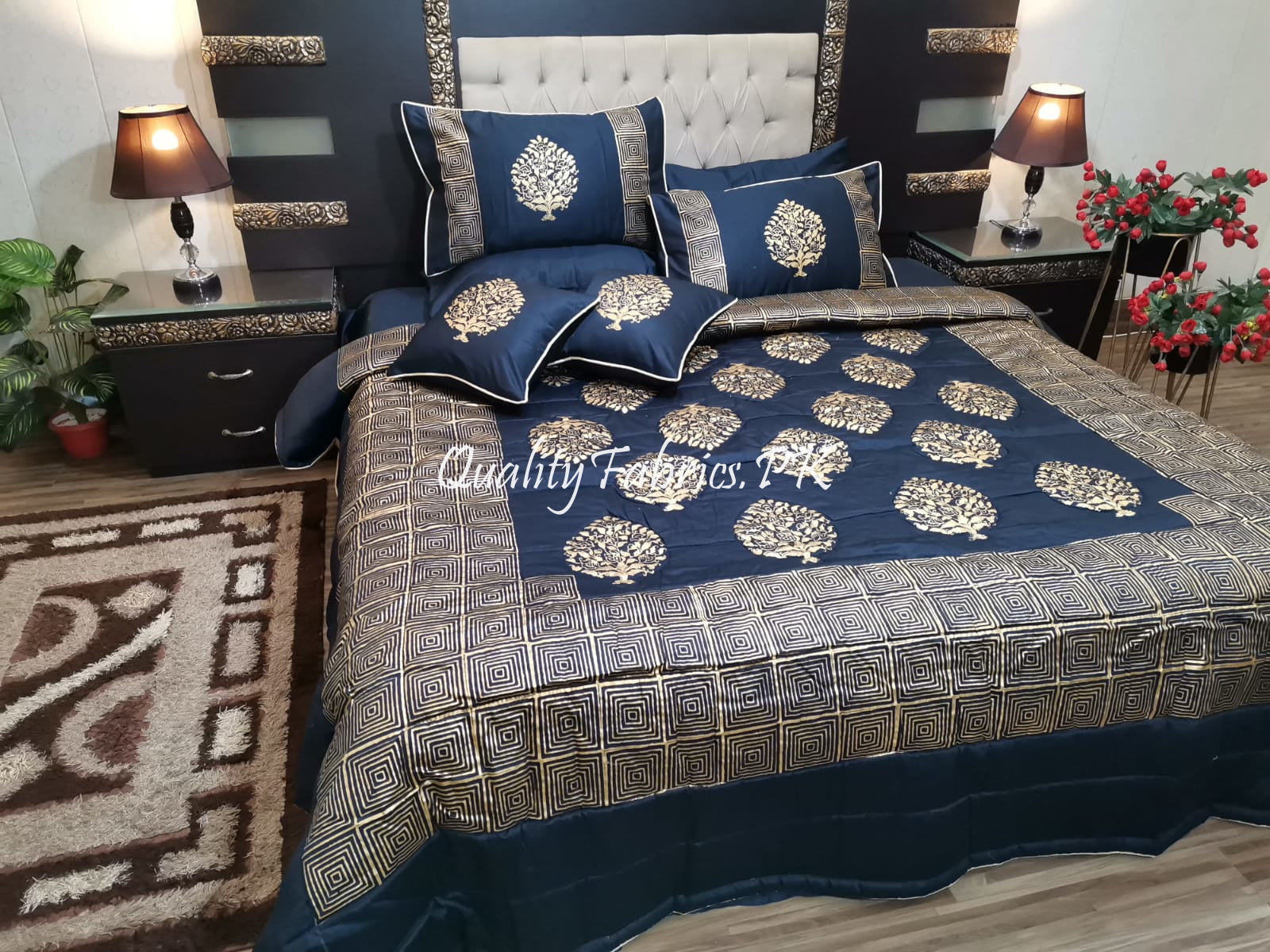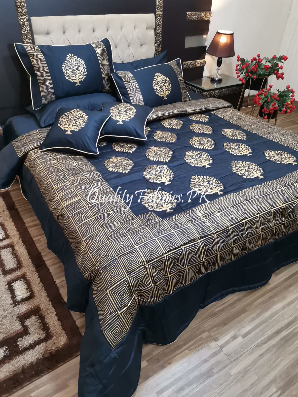 CS-662: Bridal 8 Piece Comforter Set (Block Printing & Premium Quality Cotton Satin)