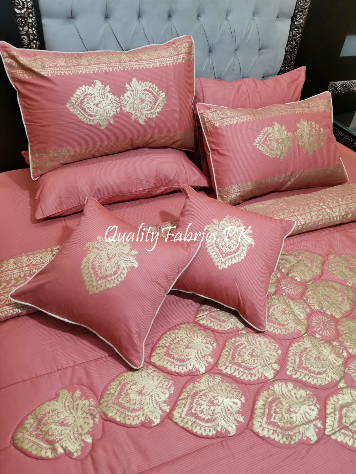 CS-669: Bridal 8 Piece Comforter Set (Block Printing & Premium Quality Cotton Satin)