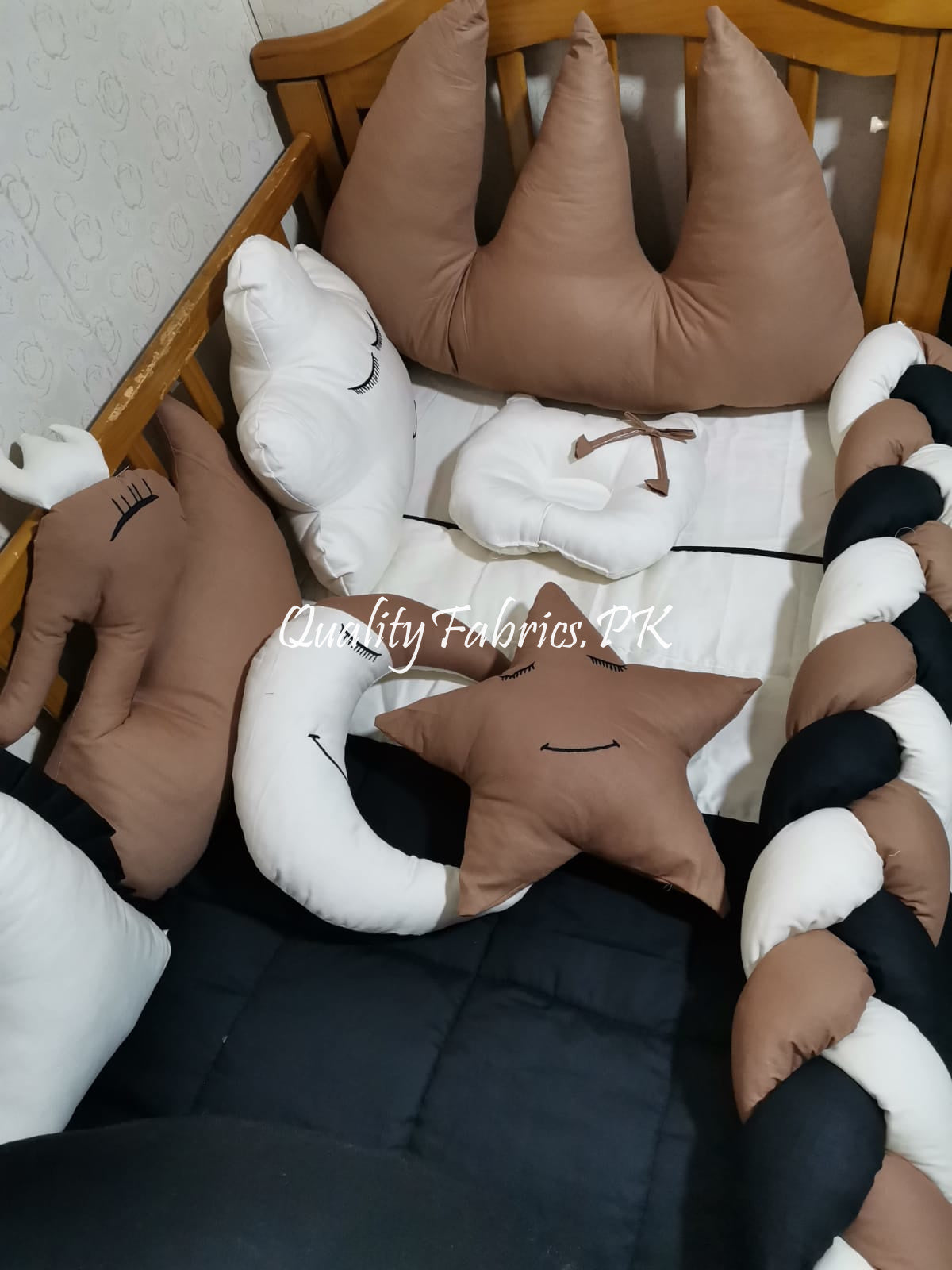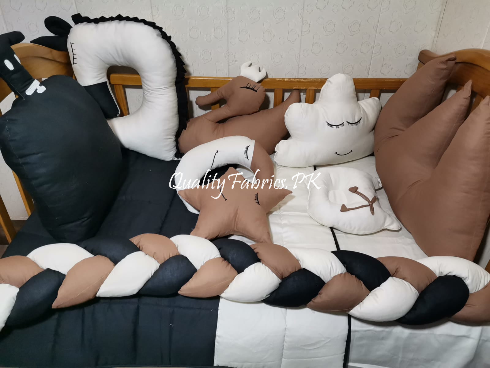 At Qualityfabrics.pk, we understand that every nursery is unique. We offer customization options to tailor this set to your specific needs. For personalized selections, please contact us via WhatsApp at 03334076963.