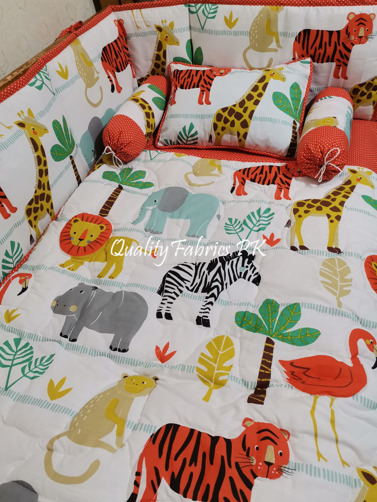 Transform your little one's cot into a cozy and stylish retreat with our 6-Piece Cot Bedding Set from Qualityfabrics.pk. Made from 100% pure cotton, this set is designed to offer unmatched comfort, safety, and versatility for newborns up to toddlers.