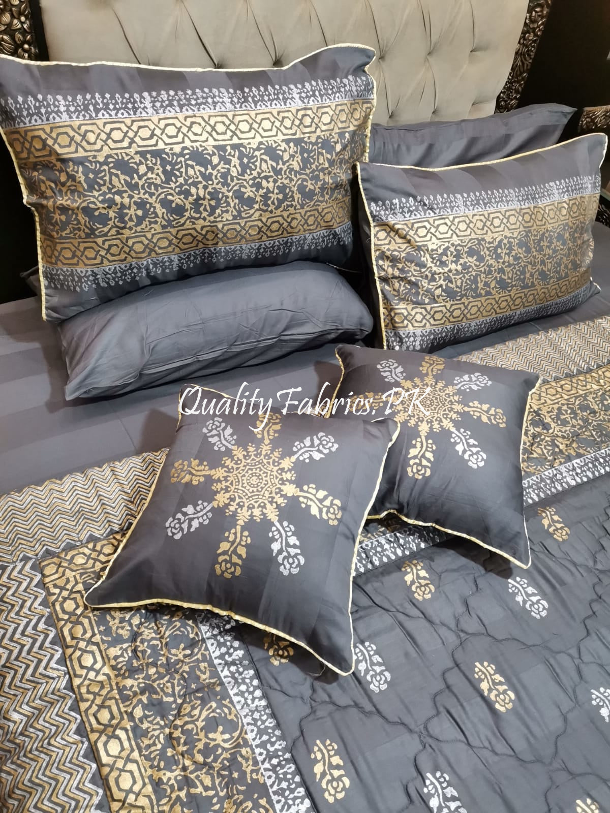 CS-681: Bridal 8 Piece Comforter Set (Block Printing & Premium Quality Cotton Satin)