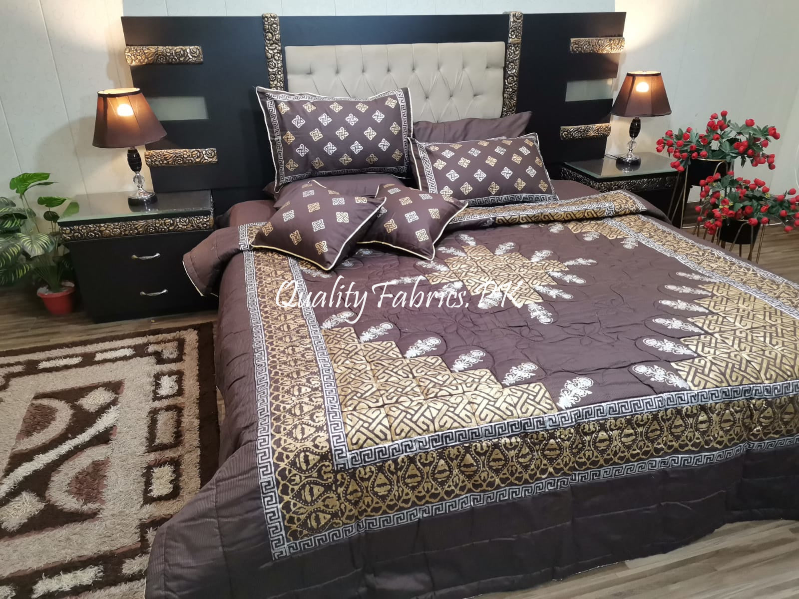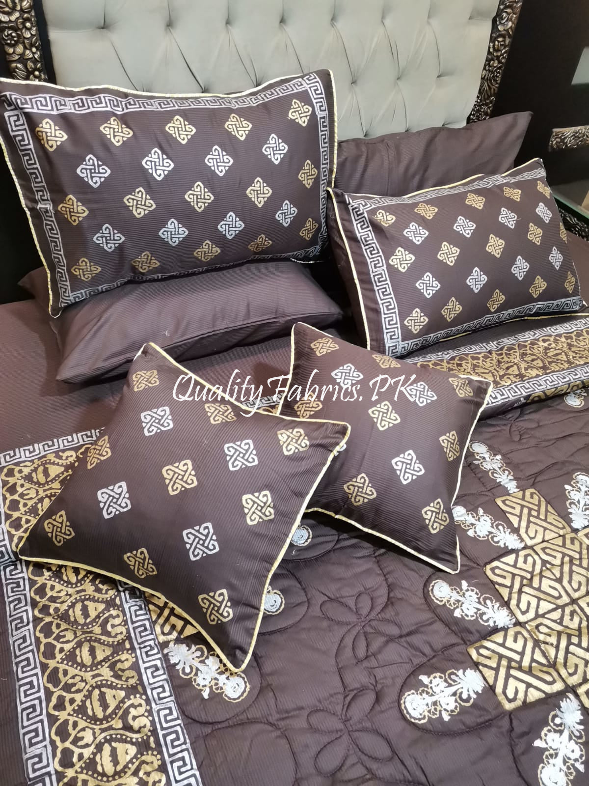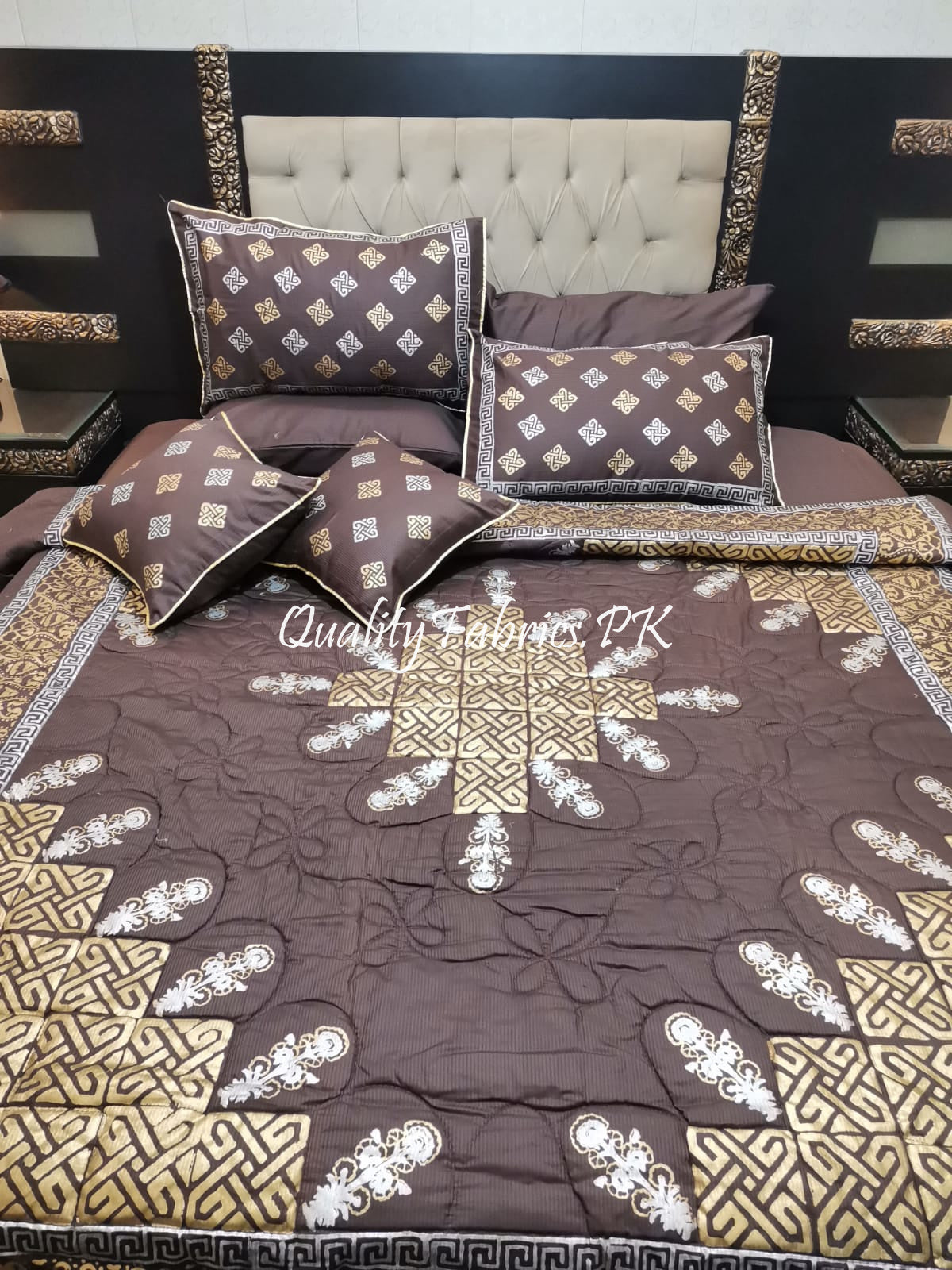 CS-685: Bridal 8 Piece Comforter Set (Block Printing & Premium Quality Cotton Satin)