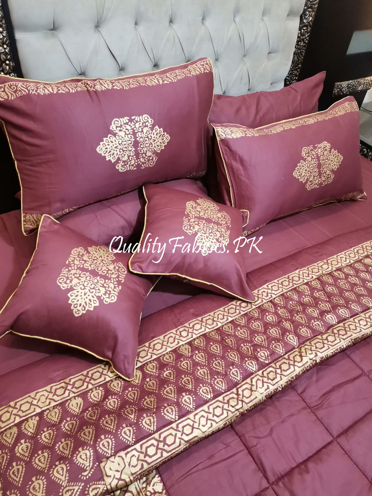 CS-687: Bridal 8 Piece Comforter Set (Block Printing & Premium Quality Cotton Satin)