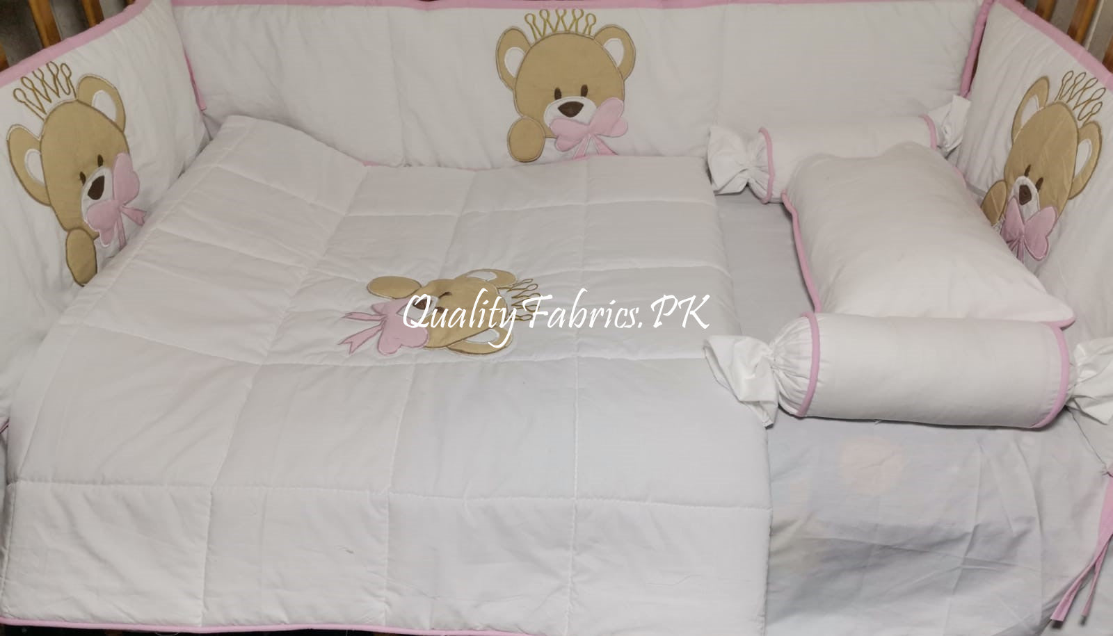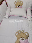 9-Piece Cot Bedding Set - Bear Theme Embroidered for Newborns to Toddlers | Qualityfabrics.pk