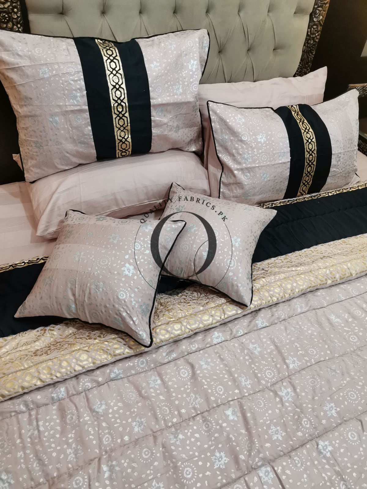 CS-753: Bridal 8 Piece Comforter Set (Block Printing & Premium Quality Cotton Satin)