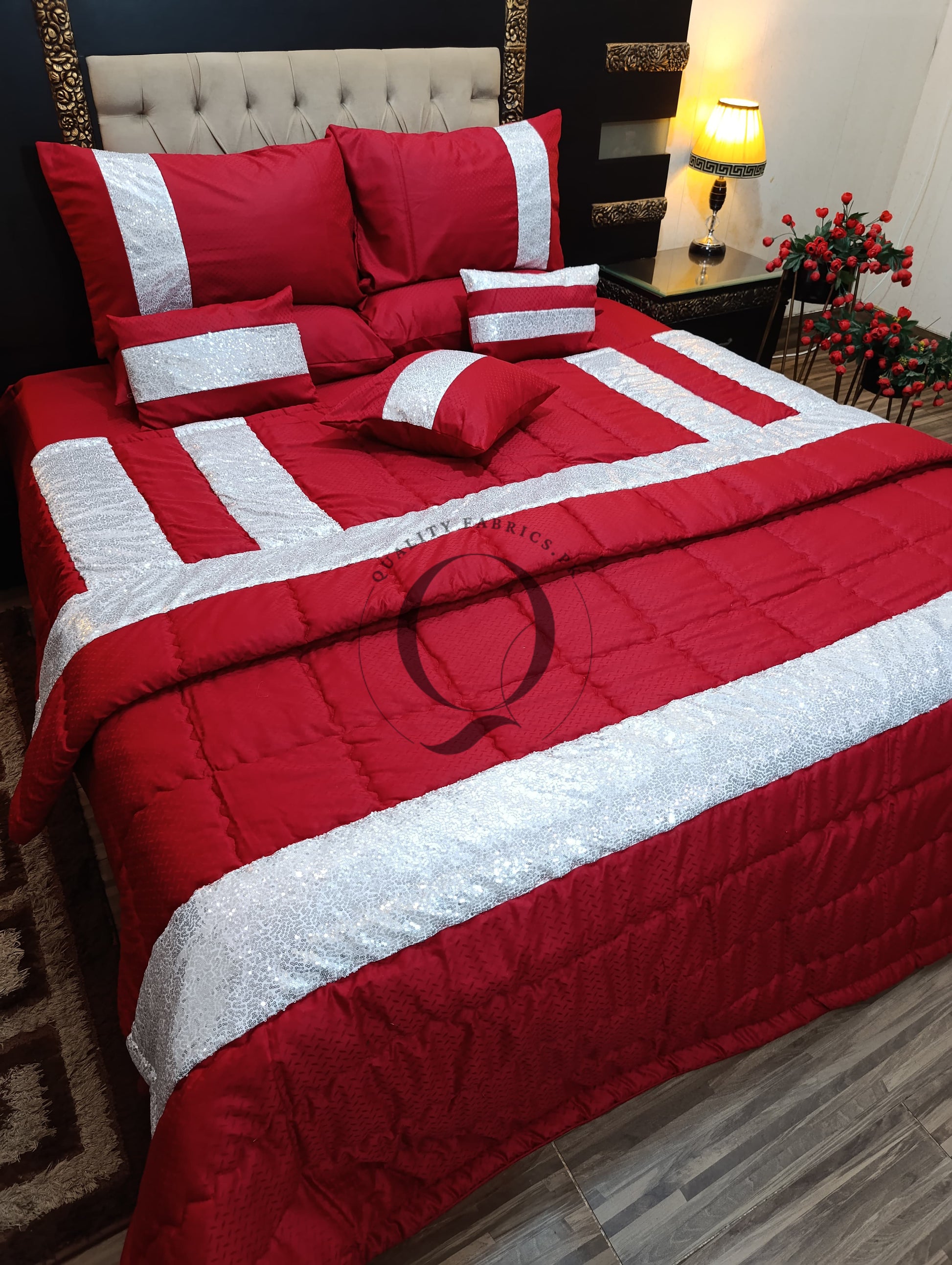 CS-783: BRIDAL 8 PIECE COMFORTER SET (Cotton Satin & Sequence)