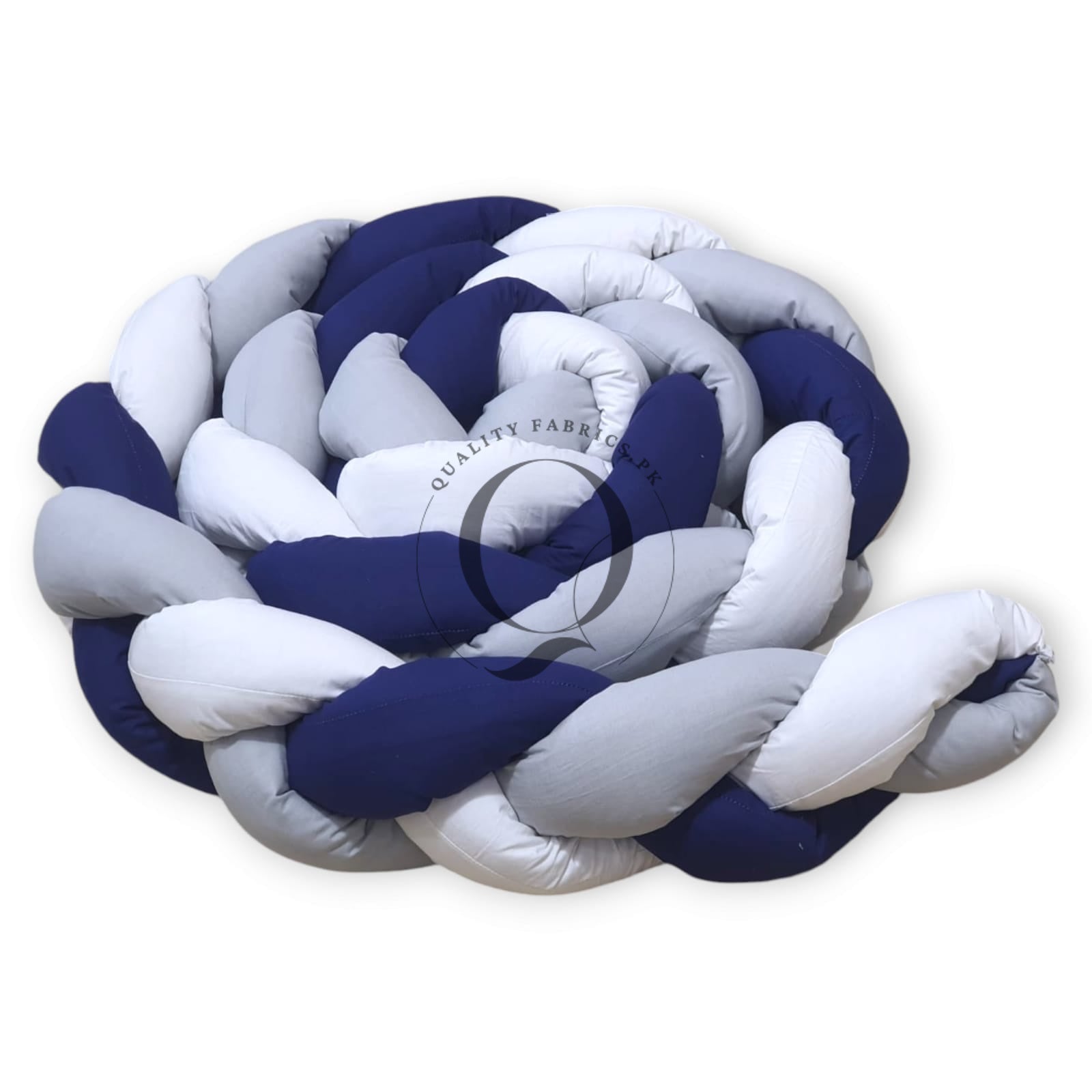 Braided bumper is a modern protective accessory, 140 inches long and 8 inches high. The bumper is made of pure cotton, filled with anti-allergic fibre balls. The braid can be wrapped around the entire inside of the crib and it will give your baby protection, comfort and a sense of security. The baby will feel more comfortable in the crib than in the open space and will be more satisfied. The baby’s calmer sleep will be guaranteed. The bumper can also be used as a protective playpen for playing outside the crib or as a barrier on the first large bed. Our QualityFabrics.PK braided bumper is suitable for children from birth. It is also a good gift for future moms.
