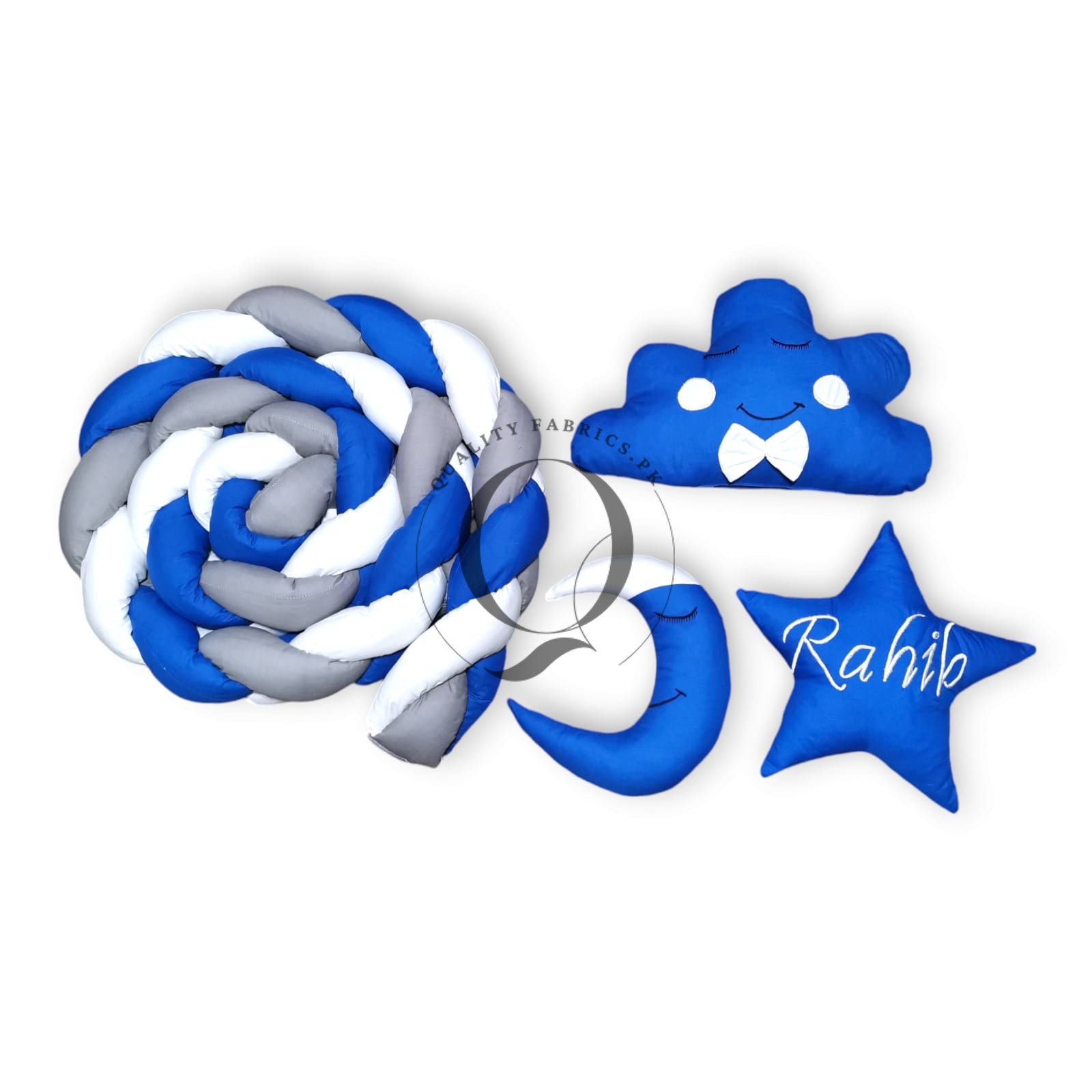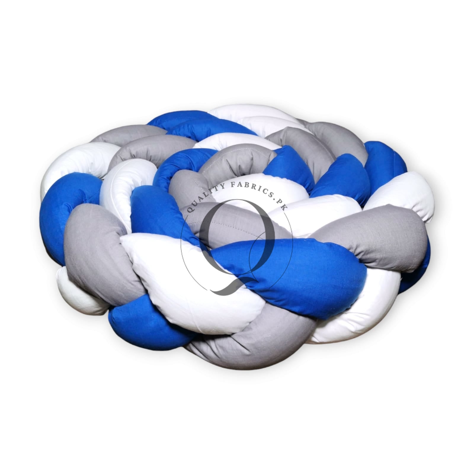 Braided bumper is a modern protective accessory, 140 inches long and 8 inches high. The bumper is made of pure cotton, filled with anti-allergic fibre balls. The braid can be wrapped around the entire inside of the crib and it will give your baby protection, comfort and a sense of security. The baby will feel more comfortable in the crib than in the open space and will be more satisfied. The baby’s calmer sleep will be guaranteed. The bumper can also be used as a protective playpen for playing outside the crib or as a barrier on the first large bed. Our QualityFabrics.PK braided bumper is suitable for children from birth. It is also a good gift for future moms.