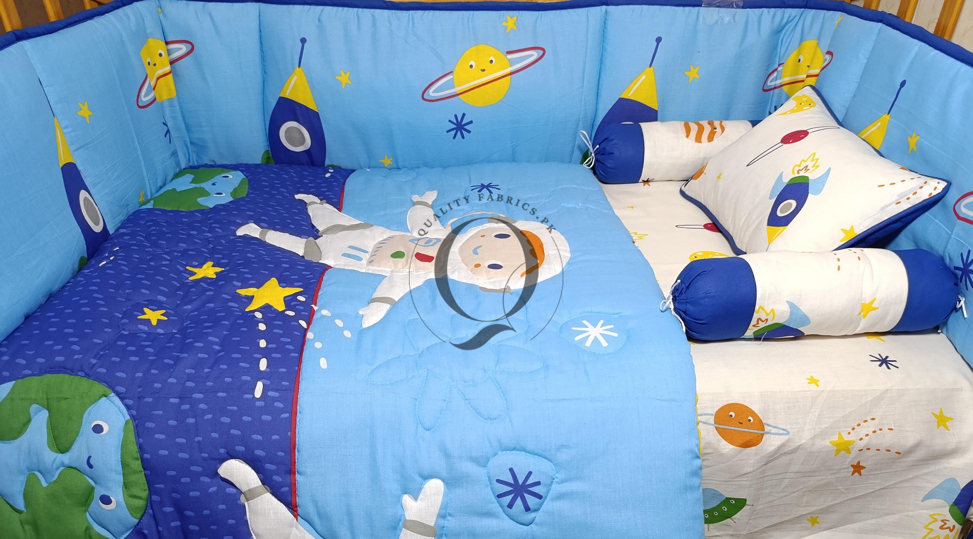 At Qualityfabrics.pk, we offer a wide range of high-quality cot bedding sets at the best prices in Pakistan. Create a haven of comfort and style for your baby today!
