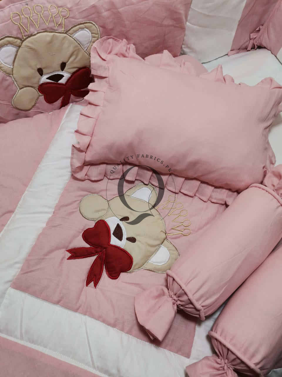 9-Piece Cot Bedding Set - Bear Theme Embroidered for Newborns to Toddlers | Qualityfabrics.pk