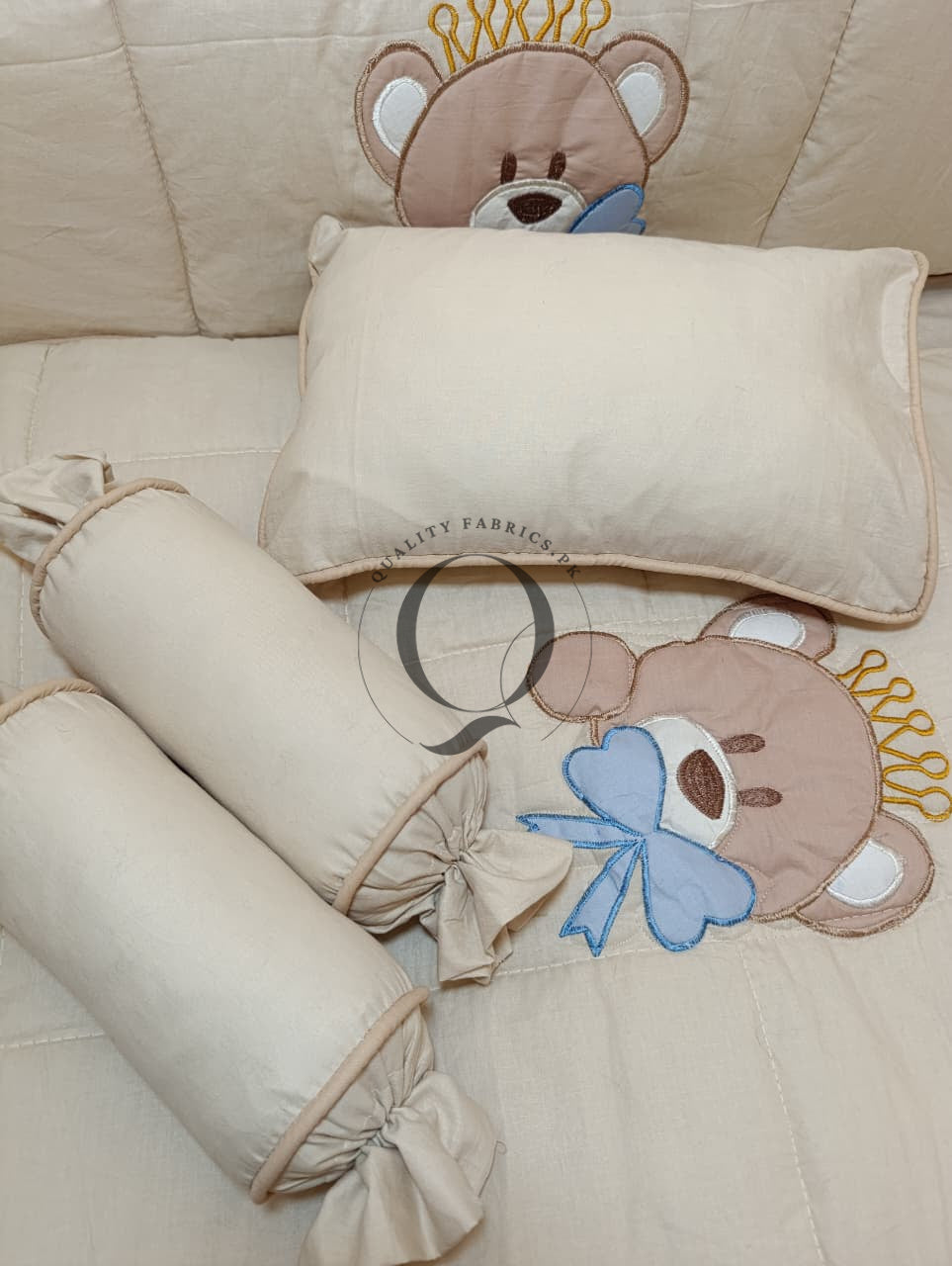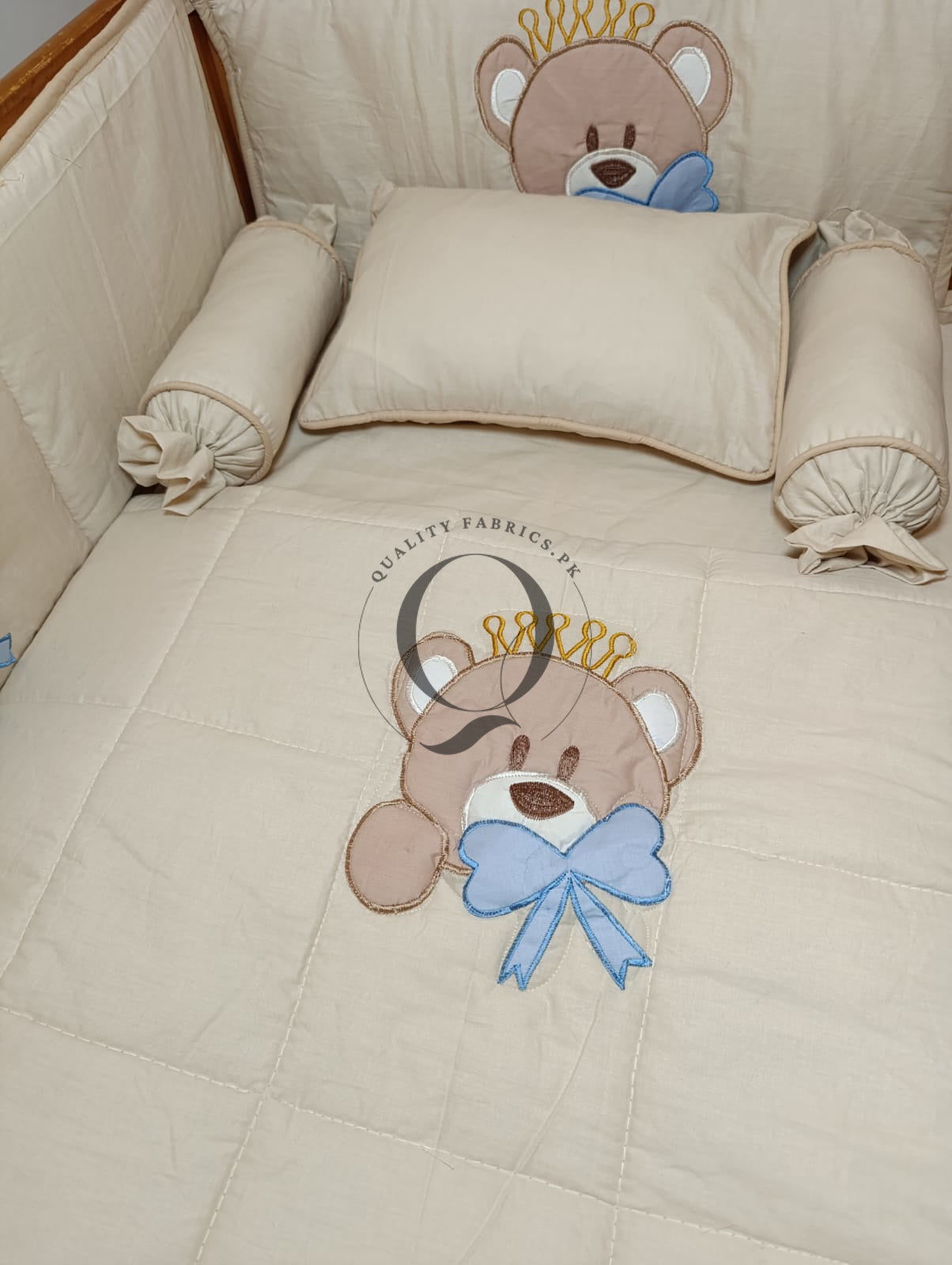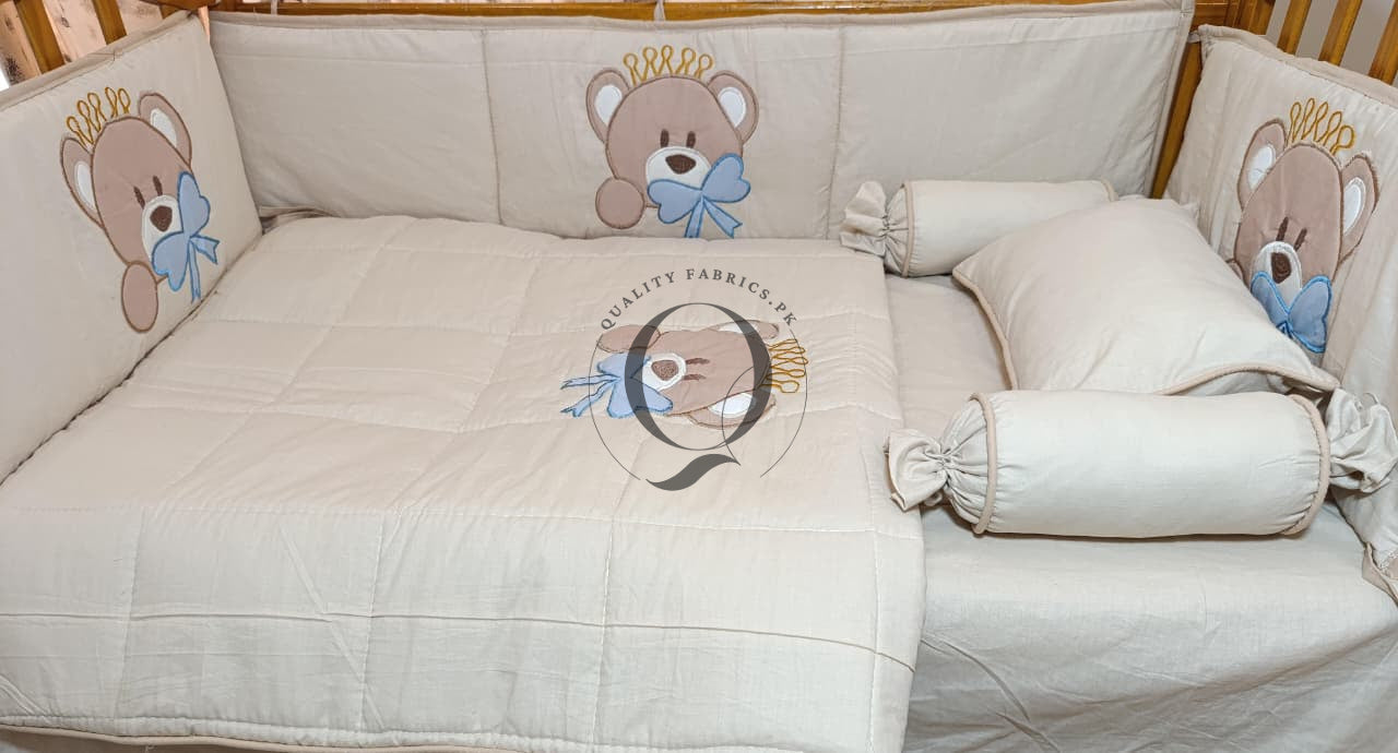 9-Piece Cot Bedding Set - Bear Theme Embroidered for Newborns to Toddlers | Qualityfabrics.pk