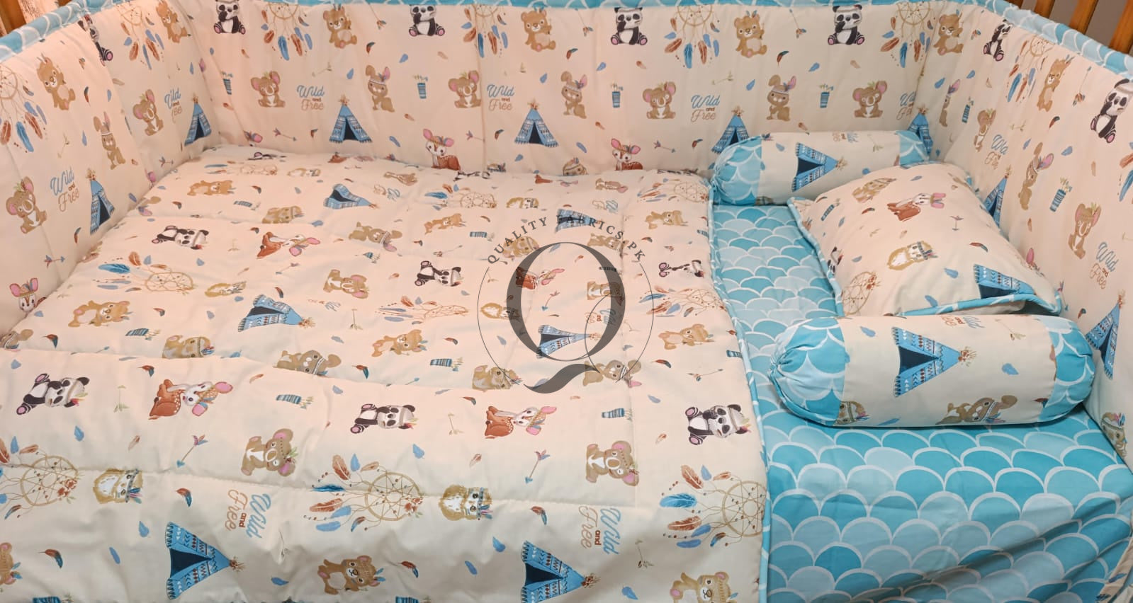 6-Piece Cot Bedding Set - Pure Cotton Comfort for Newborns to Toddlers | Qualityfabrics.pk