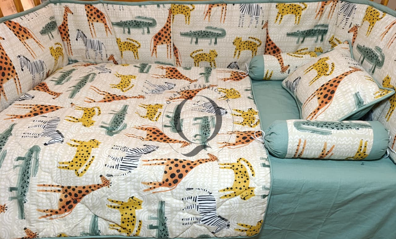 Transform your little one's cot into a cozy and stylish retreat with our 6-Piece Cot Bedding Set from Qualityfabrics.pk. Made from 100% pure cotton, this set is designed to offer unmatched comfort, safety, and versatility for newborns up to toddlers.