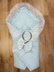 Give your baby the softest start with the Newborn Sleeping Bag by Qualityfabrics.pk. Crafted from premium quality cotton satin fabric and layered with fine net detailing, it offers a luxurious, elegant look while ensuring maximum softness and breathability for your newborn’s delicate skin.