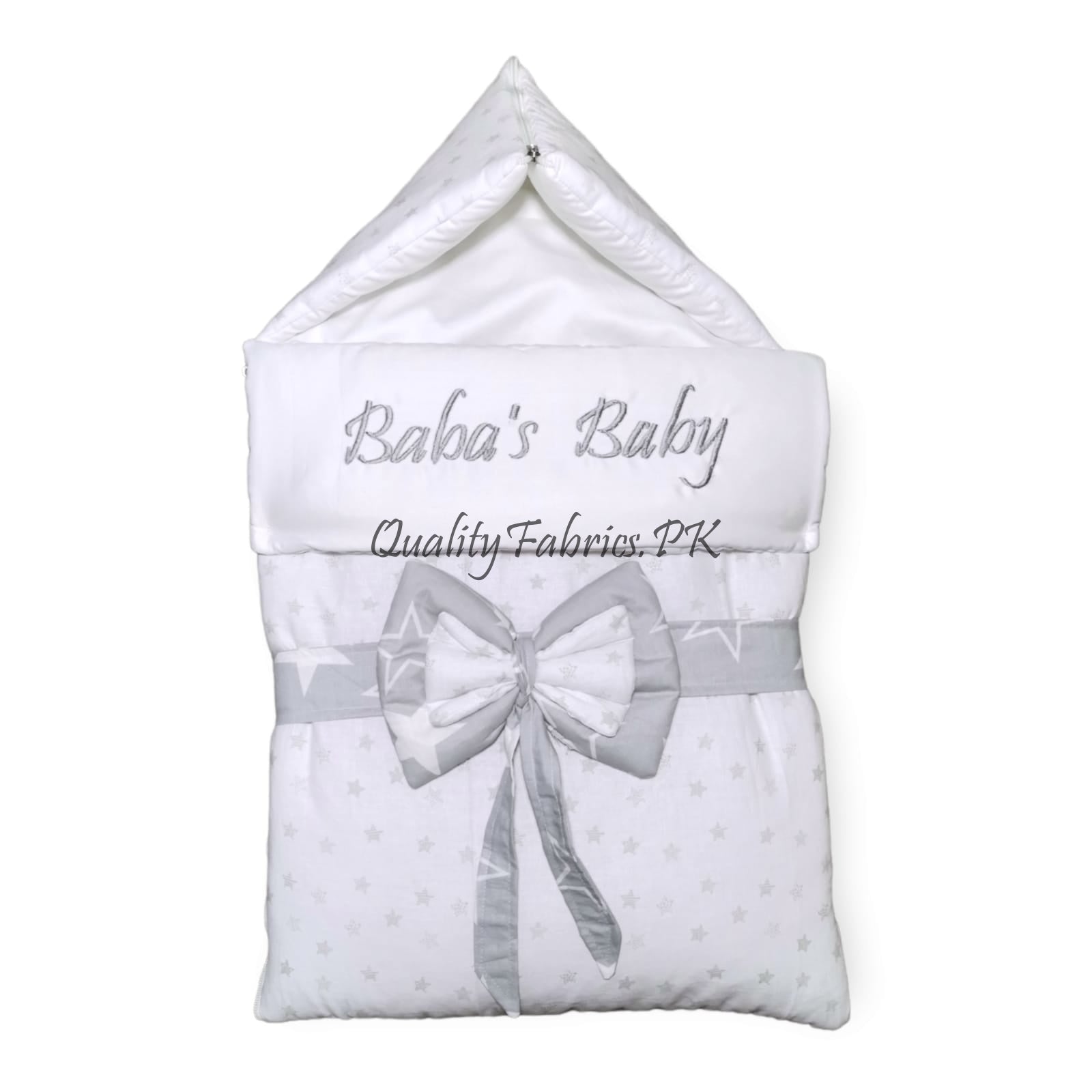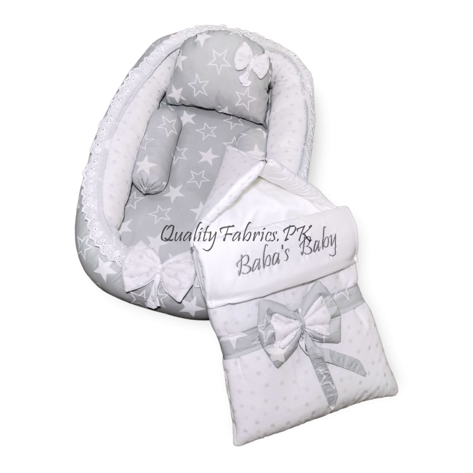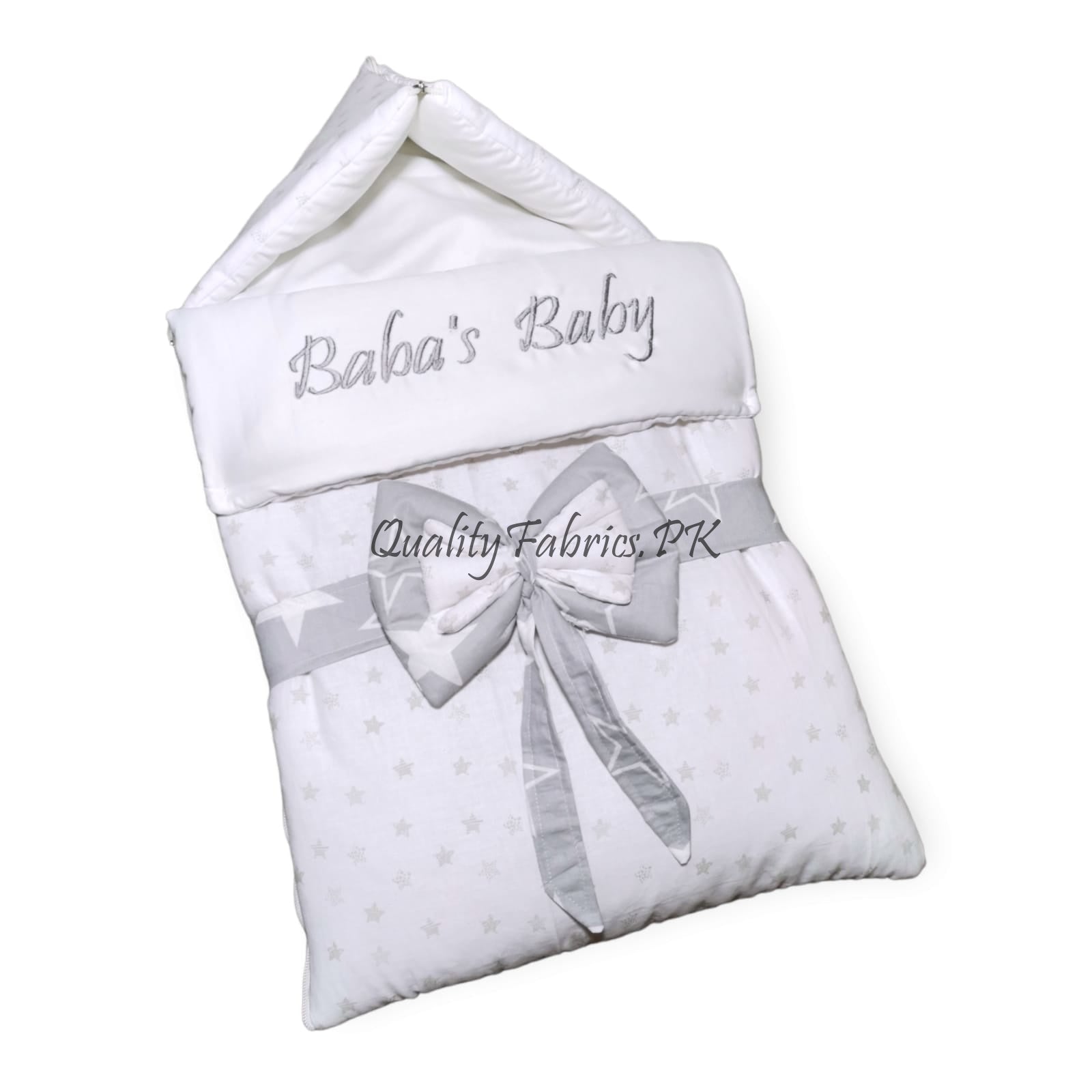Give your little one the ultimate comfort with our premium Braided Snuggle Bed and Newborn Sleeping Bag from Qualityfabrics.pk. Designed to combine style and function, these essential items provide a secure and cozy environment, perfect for your newborn’s restful sleep. We also offer customization options to add your baby’s name in both Arabic and English styles.