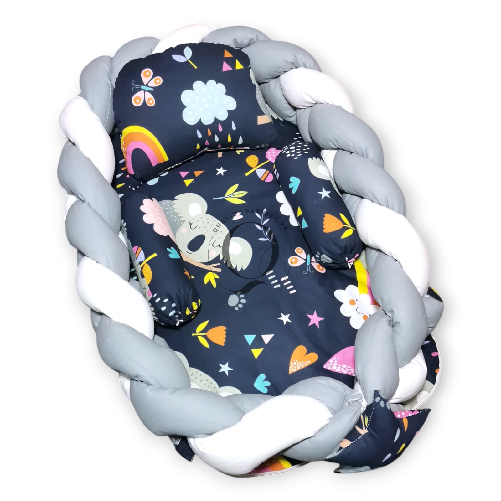 Transform your newborn's sleep routine with the luxurious comfort and stylish design of our Braided Snuggle Bed. Trust Qualityfabrics.pk to provide the best in comfort and care for your little one.